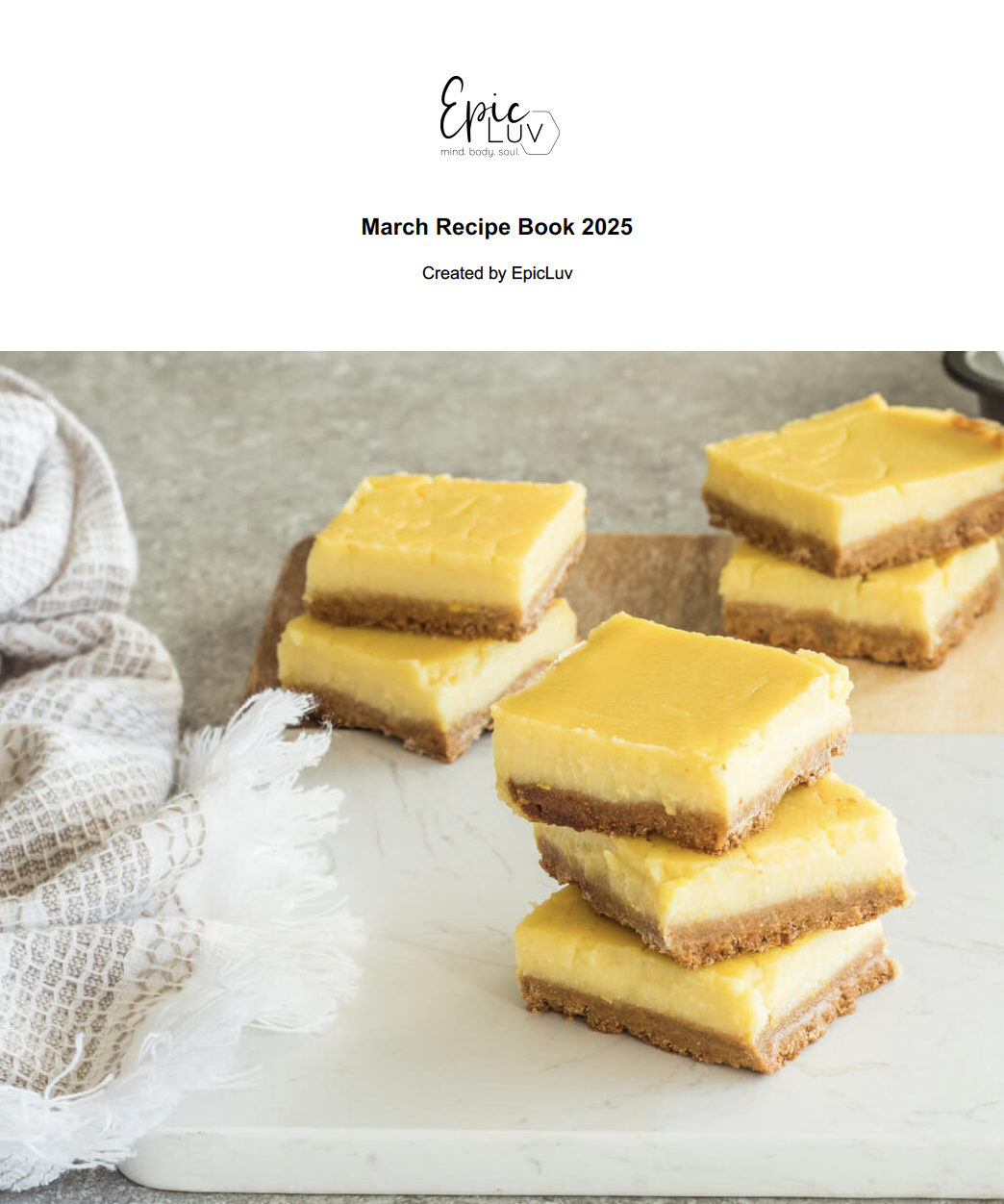 Take the guess work out of healthy and nutritious eating with EpicLuv's Monthly Recipe Books! Each PDF download comes with simple and nutritious recipes for breakfast, lunch, and dinner that are sure to keep your mind, body, and soul healthy and fulfilled.